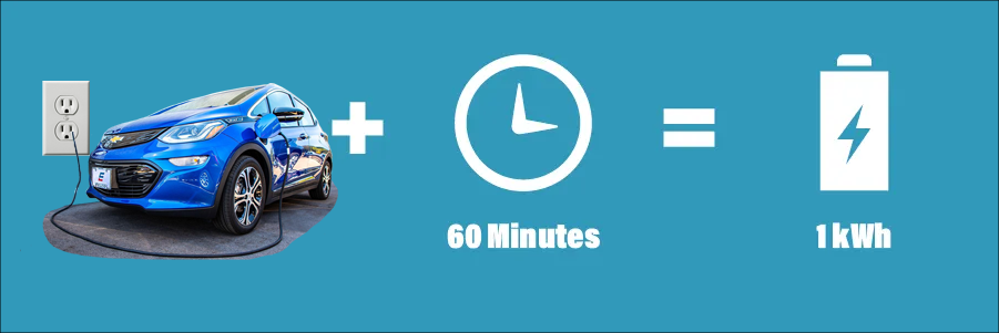 Yet another consideration is that the amount of energy transferred to a car charging from a typical wall outlet is about a kilowatt. So, Level One charging means your battery gains a kWh for every hour it is plugged in.