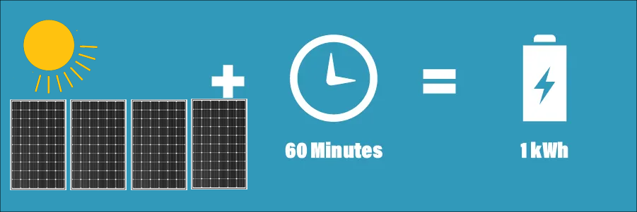 Another thing you might like to know is that a typical solar panel in full sun generates about 250 watts. This means that four panels would generate a kilowatt-hour of electricity in one hour.